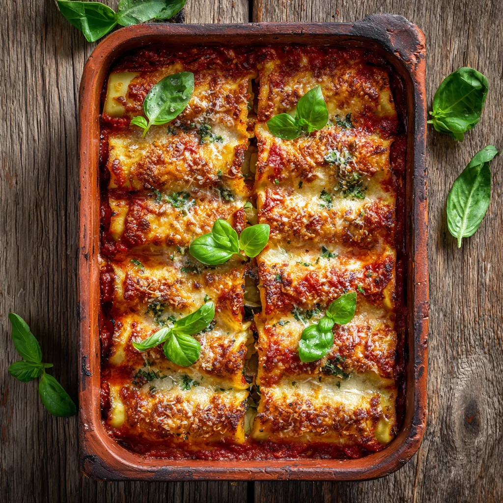 Recette italienne végétarienne de cannellonis d’aubergines farcis à la ricotta et au parmigiano, gratinés avec une sauce tomate maison. Un plat fondant et savoureux parfait pour un déjeuner ou dîner élégant.