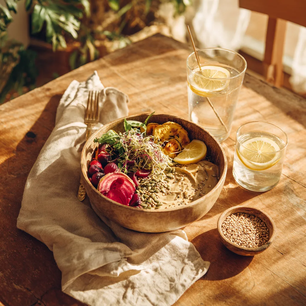 Mélanger tous les ingrédients comme une salade — C’est l’erreur classique ! Le bowl végétarien se présente avec les ingrédients disposés séparément pour garder les textures et les couleurs distinctes. On mélange juste avant de manger.