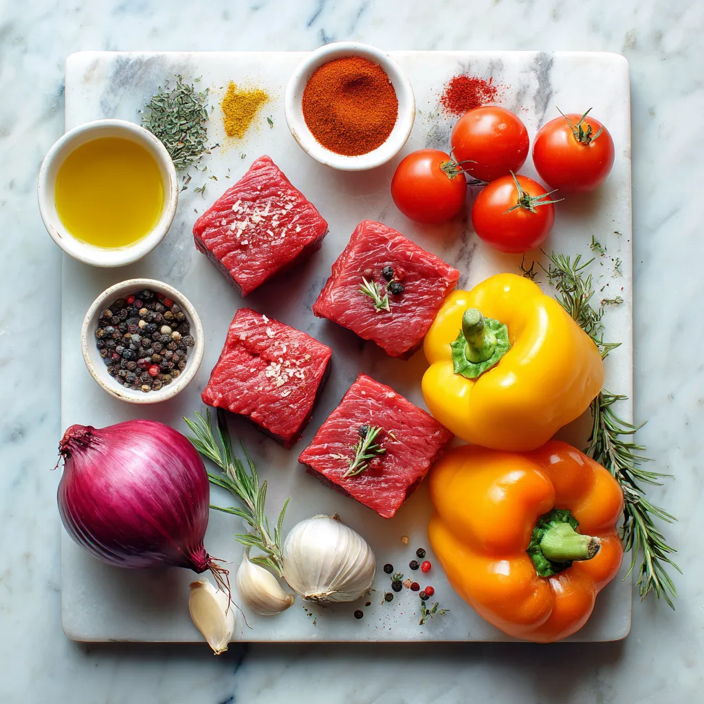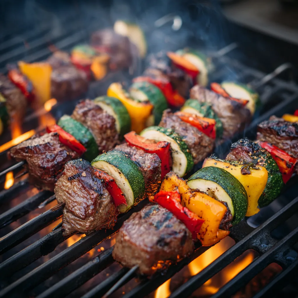 Les légumes (poivrons, oignons, tomates cerises) ajoutent couleur, croquant et douceur naturelle. Ils cuisent à la même vitesse que les cubes de bœuf, ce qui en fait des compagnons parfaits sur la brochette.