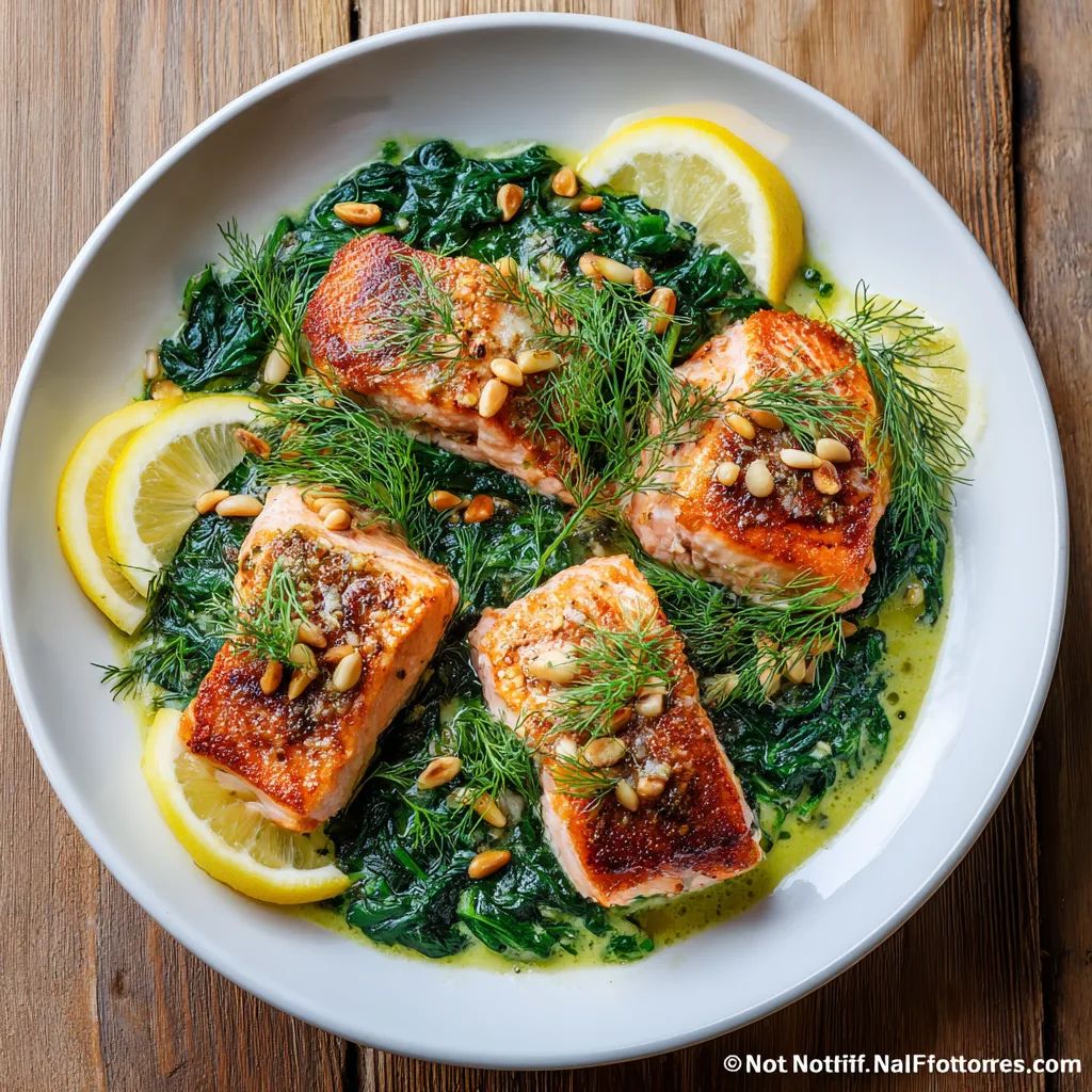Astuce secrète : ne retournez pas le saumon trop tôt, la peau doit se contracter légèrement et devenir presque « craquante », c’est la clé d’un Pavé de Saumon aux Épinards irrésistible.