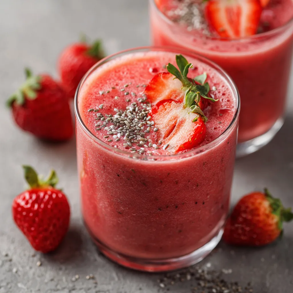 Ce smoothie aux fruits est très flexible : tu peux remplacer les fraises par un mix fruits rouges (framboises, myrtilles, mûres) pour une version plus acidulée.